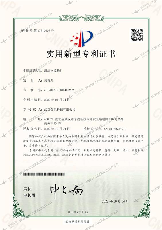 坩埚支撑构件实用新型专利证书
