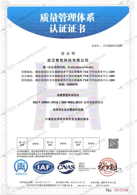 质量管理体系认证证书(中)