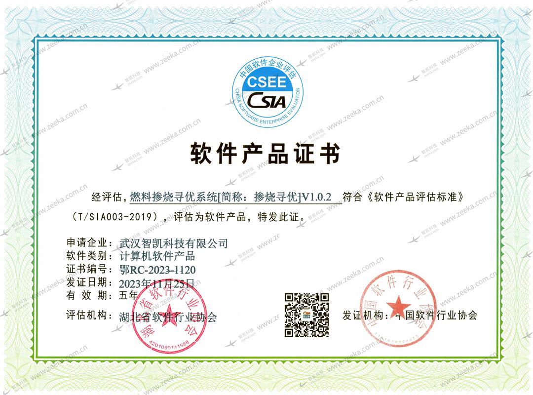 软件产品证书-燃料掺烧寻优系统