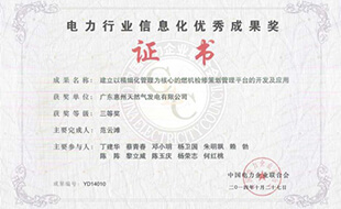 自主研发“燃机检修策划管理平台”获得电力行业信息化优秀成果奖