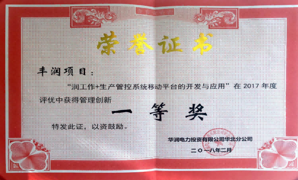 近年来,武汉智凯科技有限公司在华润电力唐山丰润有限公司先后上线FOS燃料全价值寻优系统一期和二期(补充协议)。其中我司自主开发的基于润工作的生产管控系统移动平台获得了2018年电力企业设备管理创新优秀成果二等奖、电力企业安全管理与应急管理创新三等奖、华润电力华北大区管理创新一等奖。