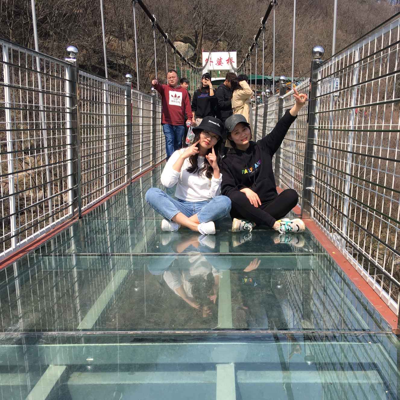 路上途径大名鼎鼎的玻璃天桥,众人一致决定上去当踩踩。身临高空,看着下面的悬空景色,还是有种与生俱来的恐惧感。但是,总觉的妹子们都很大胆的感觉,完全没有惧色。