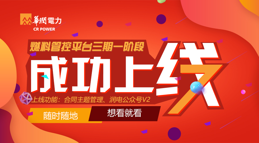 燃料管控平台于2017年启动建设, 2018年8月25日完成一、二期功能上线,范围主要覆盖主题管理、燃料商情、采购管理、厂内管理、内控管理、预警中心、报表中心、辅助决策等,已接入10个大区公司的33个火电项目公司,包括PC端和润电公众号应用,为后续采用信息化手段加强燃料采购全过程精细化管控提供了坚实的基础。