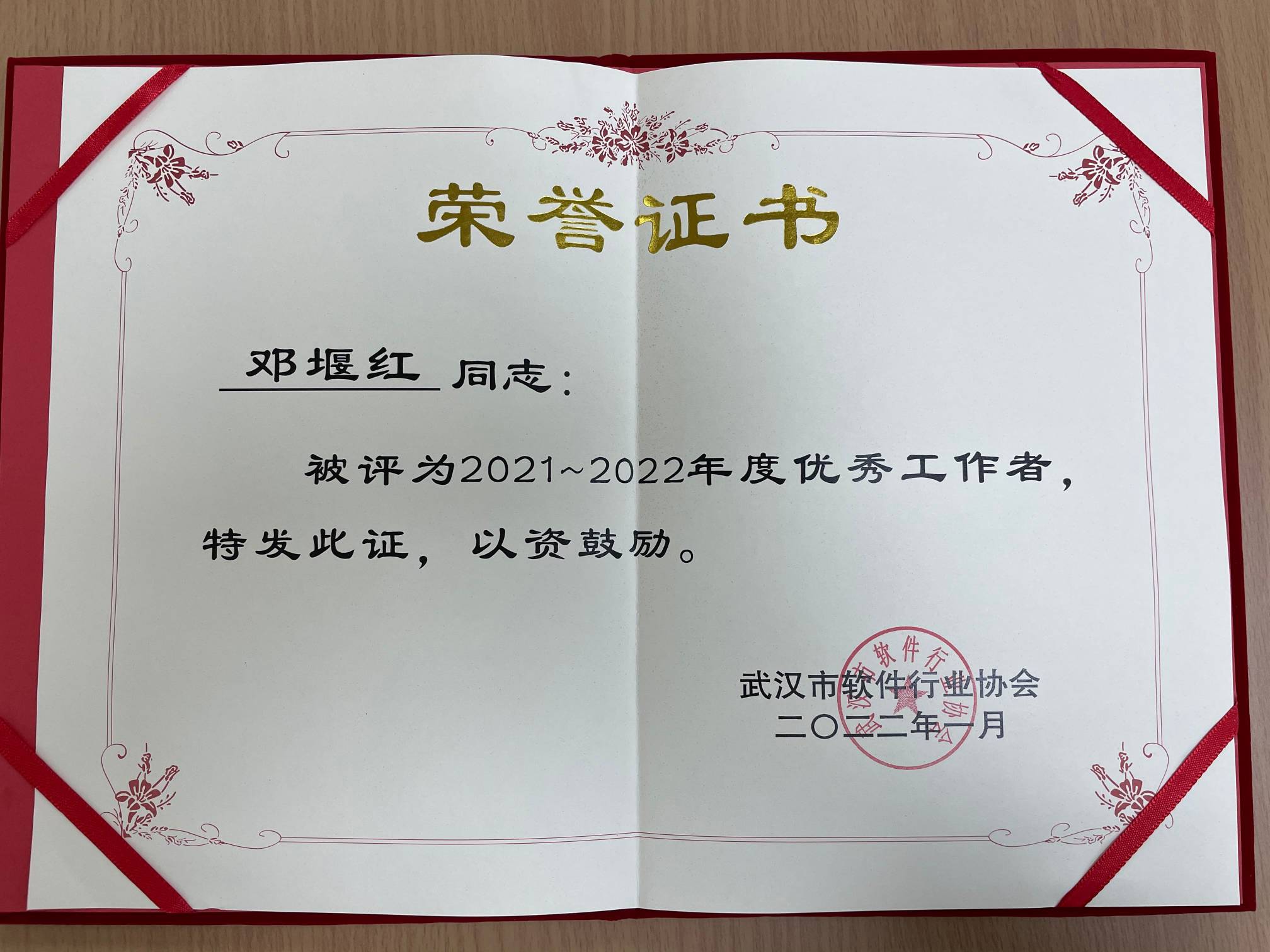 公司员工荣获武汉市软件行业协会颁发的2021~2022年度优秀工作者证书。
