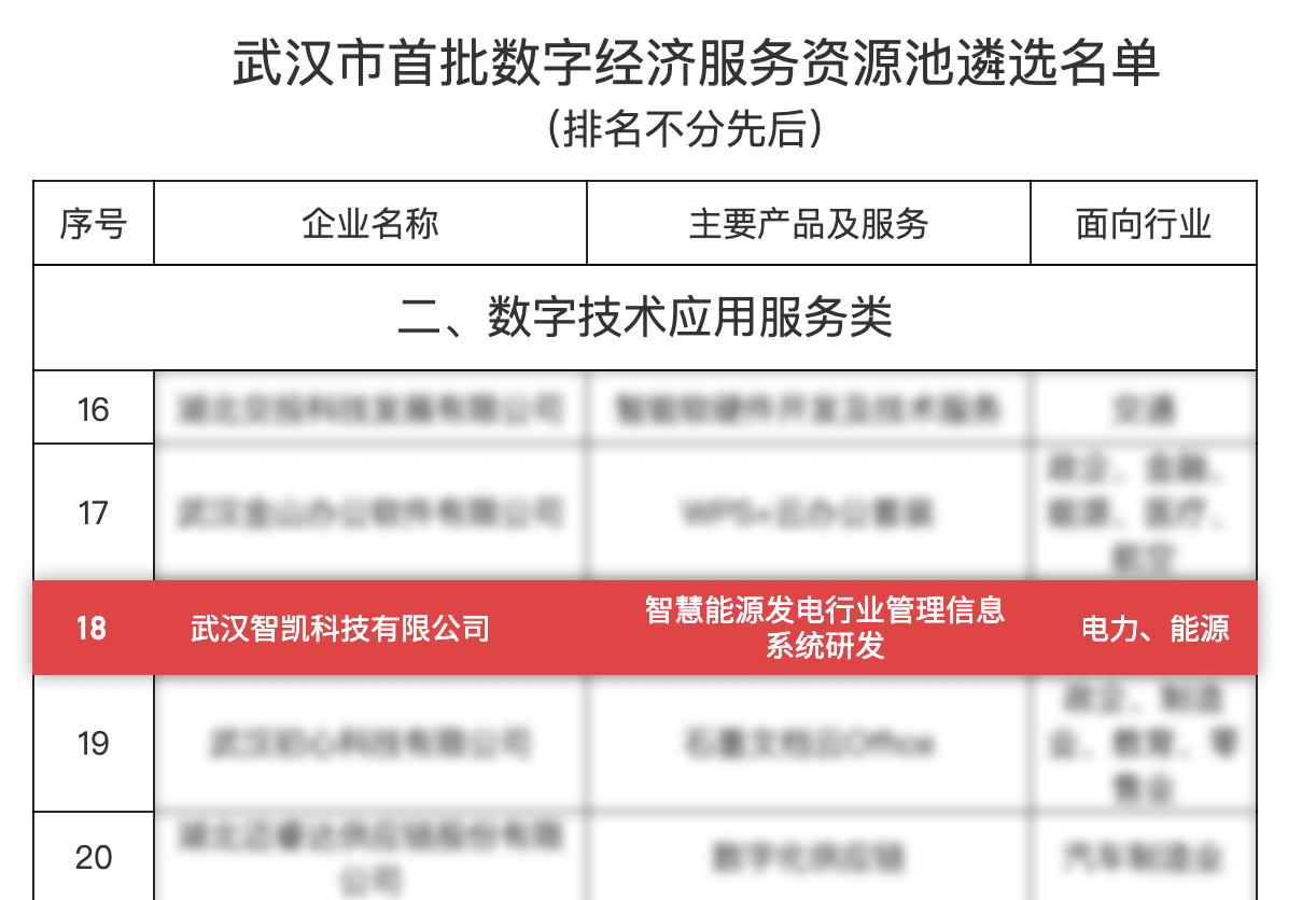 近日,武汉市经济和信息化局公布了“武汉首批数字经济服务资源池遴选评审结果”,武汉智凯科技有限公司上榜。