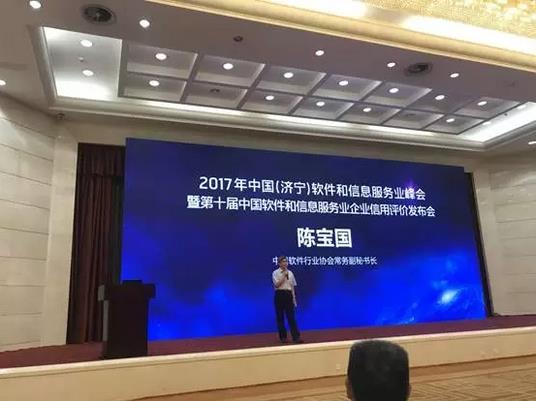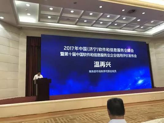 2017年7月20日,第十届中国软件和信息服务业企业信用评价发布会暨2017年中国(济宁)软件和信息服务业峰会在山东济宁成功举办。国家商务部市场秩序司原巡视员温再兴,济宁市经济和信息化委员会陈夫靖副主任,济宁市商务局刘亚东局长,济宁高新区党工委委员、调研员李征主任,济宁高新区管委会信息产业办公室徐廷福主任,中国软件行业协会尹洪涛副理事长,中国软件行业协会陈宝国常务副秘书长,商务部研究院信用研究所韩家平所长,北京大学中国信用研究中心研究员胡崇宇博士,中国软件行业协会信用评价中心温晖主任出席了会议。来自全国各地的多家软件行业协会及企业代表共计200余人参加了会议。