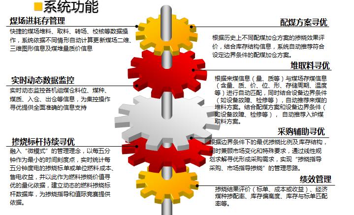 武汉智凯科技有限公司自主研发的火电燃料全价值寻优系统面向电厂厂内煤场的管控,以及燃料的价值链管理,强化华润电力的固有成本控制能力,提高市场竞争力。该系统涵盖了煤场管理、掺配烧分析、成本决策和统计分析等多个环节的管理。煤场管理的数字化使得煤场可视化程度加强,提高了工作效率,延伸了价值链;掺烧方案的自动寻优使得系统自动匹配最佳的掺烧方案,从而提升燃料管理的价值链;系统内部能够与运行智能优化系统、ERP及SIS进行结合,并且进行自动寻优;通过寻优的功能,将成本意识植入到日常管理,从全价值链控制度电燃料成本。通过对燃料内控的有效管理,达到控制燃料成本、提高生产效益的目的。