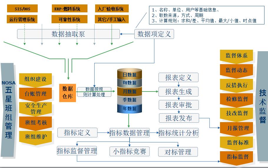 1、能够对能反应生产营运的各项指标数据进行综合分析,建立反应全公司生产营运的指标监控跟踪体系,我们将从系统中按定义的规则抽取数据,结合部分从Excel导入的和由相关岗位输入的数据,采用数据仓库存储及大数据分析法,按日、月、季、年等周期根据数据指标特性进行求和、求平均、求差、求最大值、求最小值等计算统计。