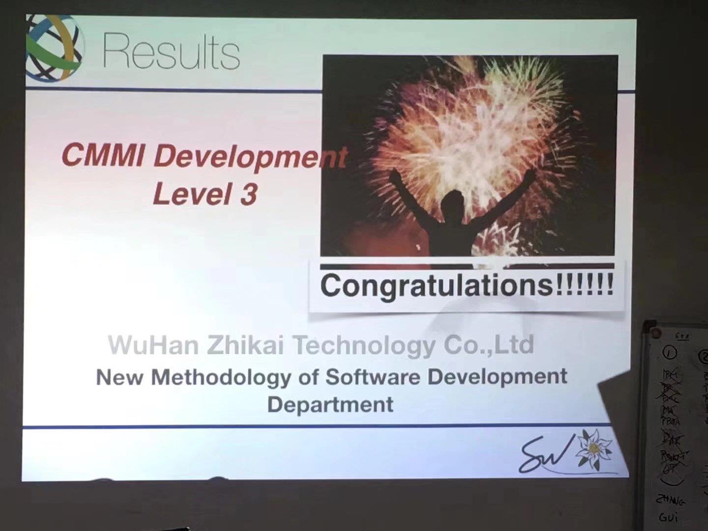 2017年11月30日,在武汉智凯科技有限公司会议室举行的用于过程改进的CMMI标准评估方法认证结果发布会上,SEI主任评估师向公司高层和参与评审的ATM成员,以及项目组成员郑重宣布:经过严格的现场审核和评估,武汉智凯科技有限公司已经达成了CMMI3级目标,成功通过CMMI3级认证!